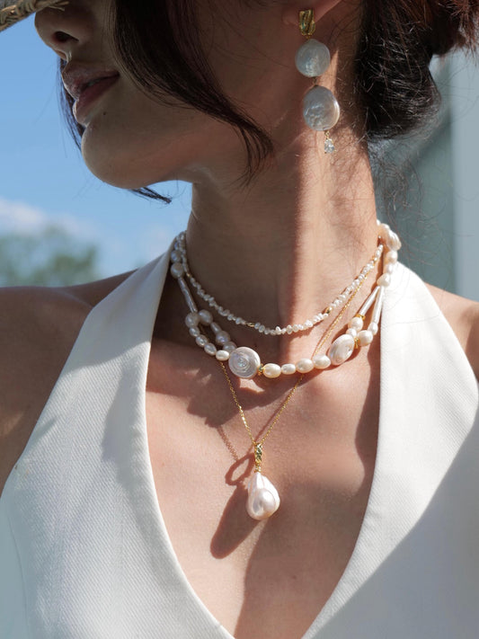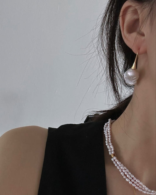 The Dewdrop Silhouette Baroque Freshwater Pearl Earrings