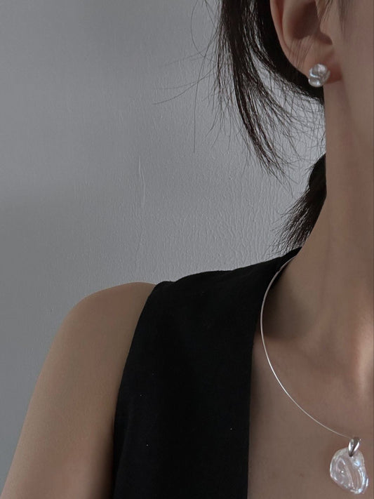 Frost Core Keshi Baroque Freshwater Pearl Studs