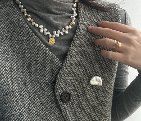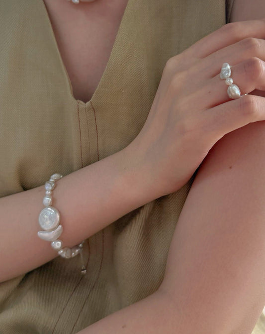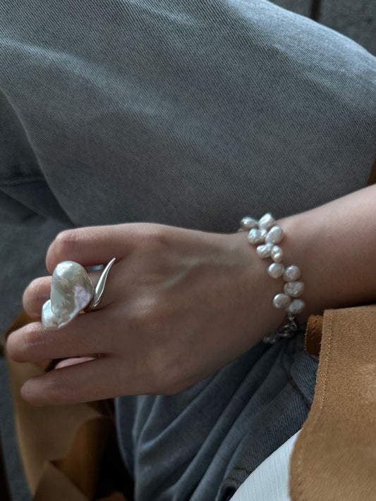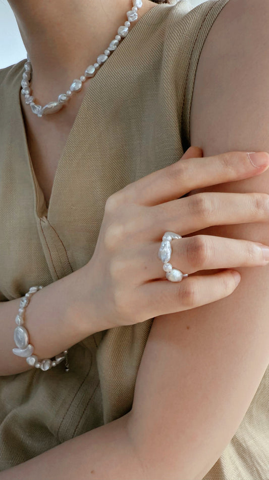 Celestial Drift Baroque Freshwater Pearl Ring & Elastic Band Ring