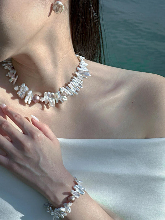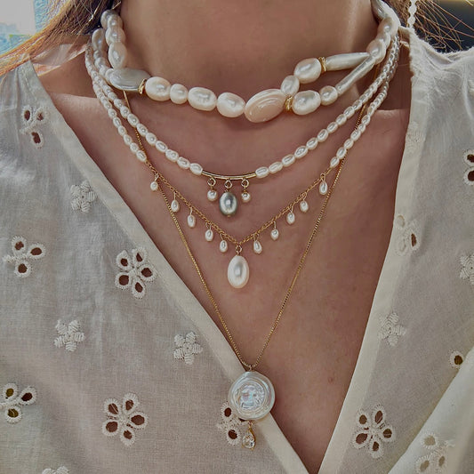 Baroque Freshwater Pearl Necklace with Dual Sculptural Pendants