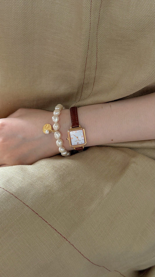 Baroque Freshwater Pearl Bracelet with Gold Coin Charm