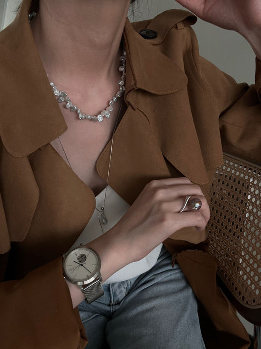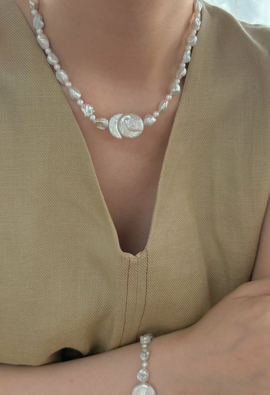 Elowen Crest Baroque Freshwater Pearl & Coin Soft Silver Choker Necklace