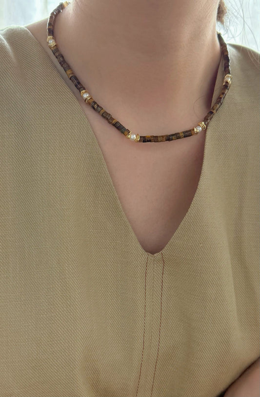 Stonewave Tiger Baroque Pearl & Tiger Eye Beaded Choker