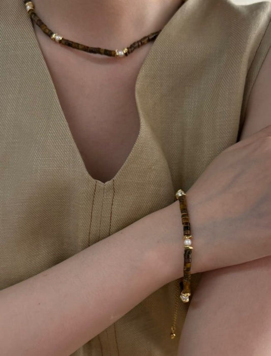 Baroque Freshwater Pearl & Tiger Eye Beaded Bracelet