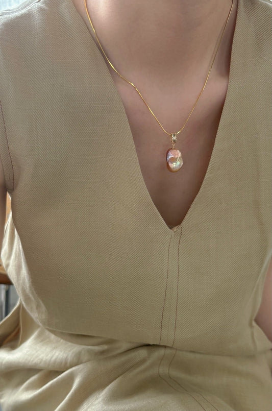 Baroque Freshwater Pearl Pendant Necklace & 18K Gold Vermeil Snake Chain