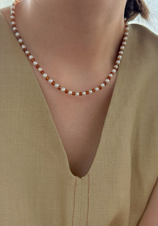 Garnet Rhythm Baroque Freshwater Pearl Beaded Necklace & Garnet