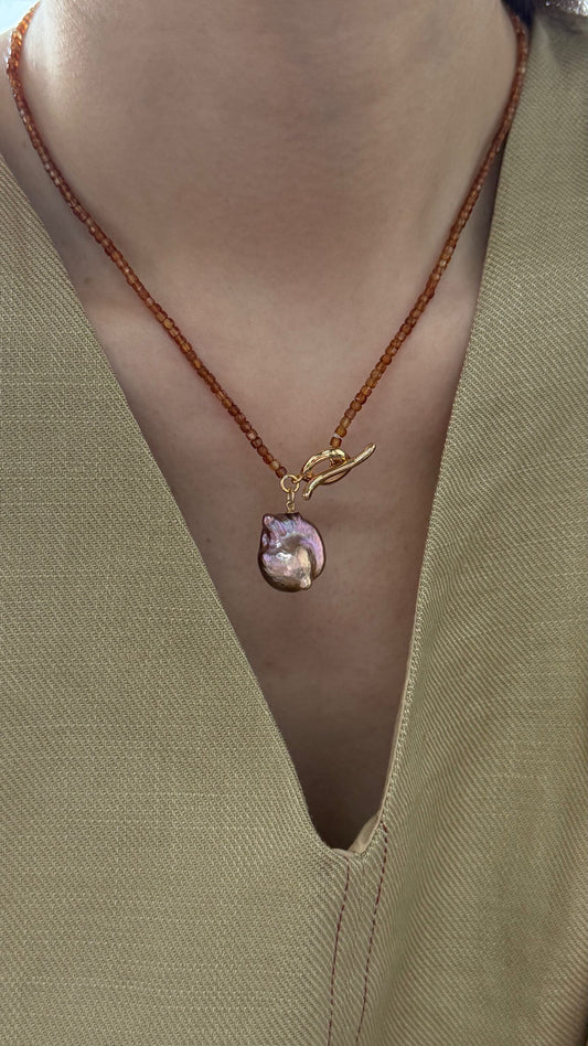Molten Seed Baroque Freshwater Pearl Pendant Necklace & Garnet Beads