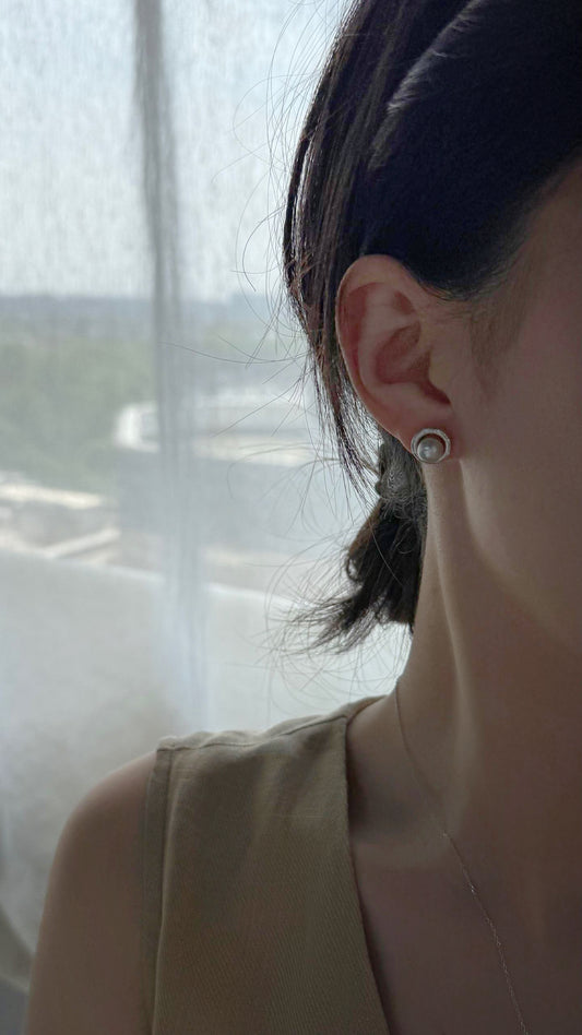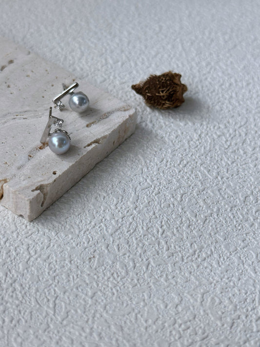 Gleambound Stud Brushed Silver Akoya Pearl Stud Earrings