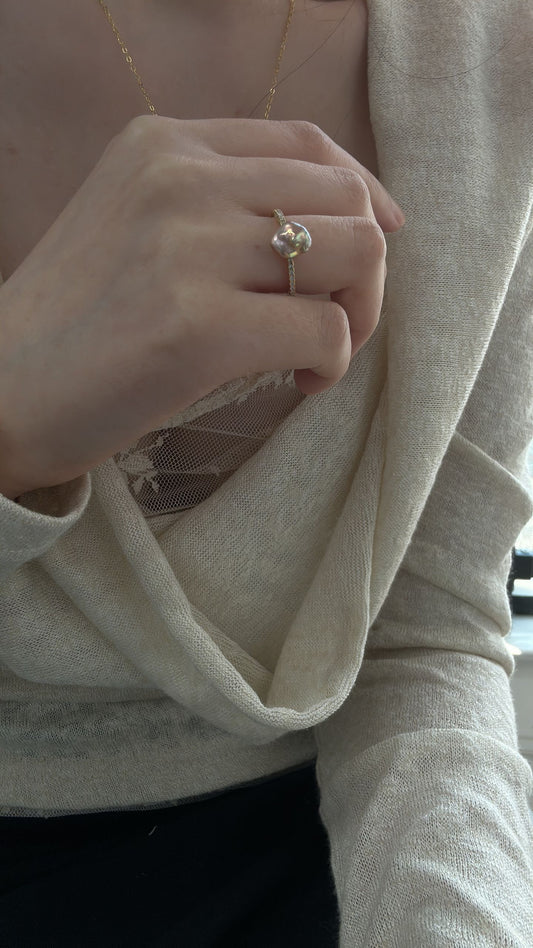 Nova Arc Baroque Freshwater Pearl & Cubic Zirconia Ring