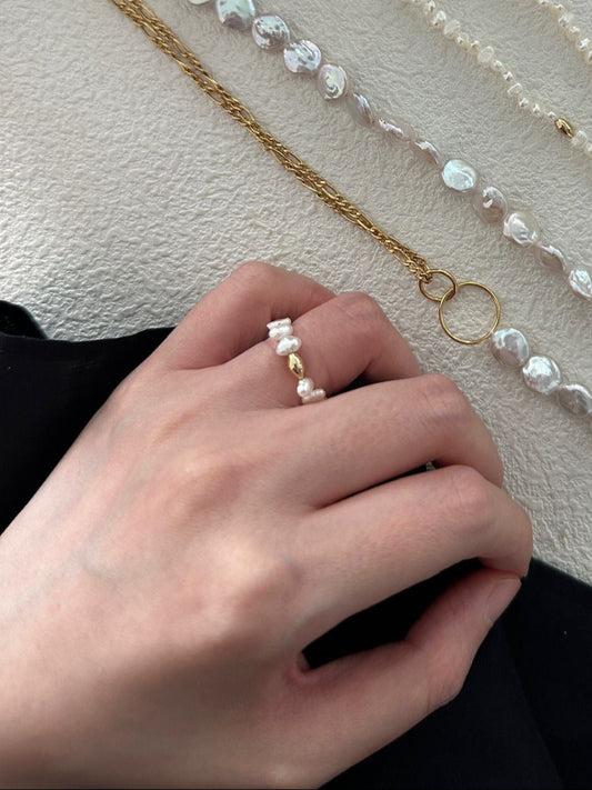 Celestial Drift Baroque Freshwater Pearl Ring & Elastic Band Ring