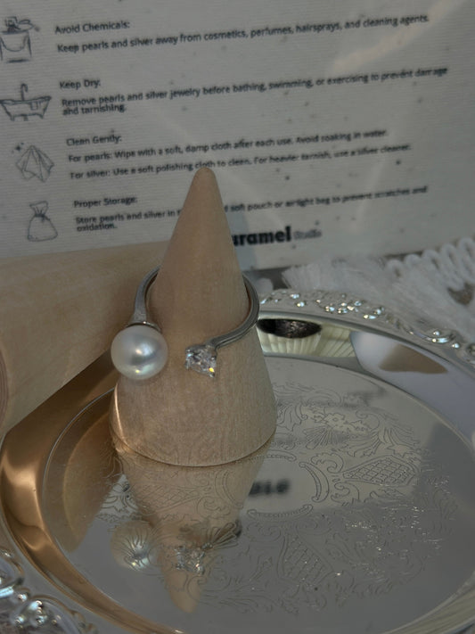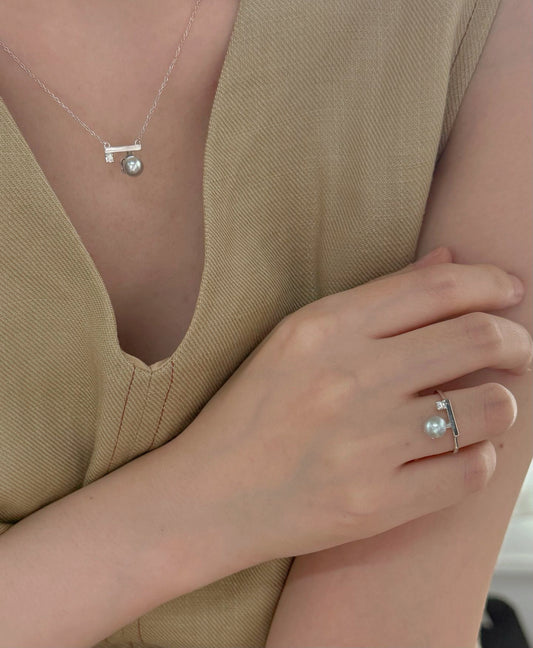 Sugarbar Ring | Akoya Seawater Pearl Open Ring with Silver Bar & Zircon