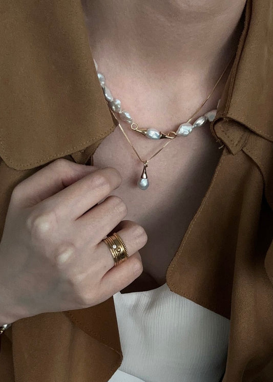 Baroque Freshwater Pearl Necklace with Dual Sculptural Pendants